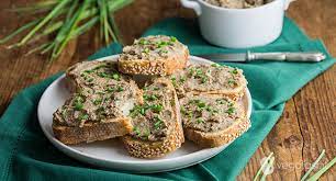 Versare il tutto nel tritatutto unendo anche le noci, e frullare fino ad ottenere un composto quasi omogeneo, andrà benissimo se si vedranno ancora dei pezzettini dei vari ingredienti. Trasferire il paté in una ciotola e lasciarlo riposare almeno un’oretta in frigorifero in modo da far amalgamare bene i sapori. Servire sulle fette di pane, decorando con ’erba cipollina tagliata fine.